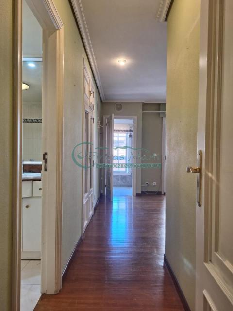 Estupendo piso de 197 m² situado en pleno centro de la ciudad con vistas a la Ría con tres amplísimos dormitorios y armarios empotrados,tres baños uno de los cuáles está integrado en la habitación principal la cuál posee además un magnifico vestidor con puertas de espejo lo que proporciona mayor amplitud. Destaca el imponente salón con amplios ventanales y una zona separada por un arco que puede destinarse tanto a un despacho como a biblioteca. La vivienda posee además una amplia plaza de garaje y trastero.